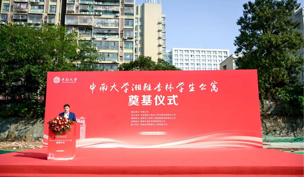 2025年10月23日上午,中南大学湘雅杏林学生公寓项目开工仪式在杏林校区南侧项目场地内举行。副校长黎志宏、何旭辉出席仪式,学校相关职能部门负责人、项目所在街道办事处主要领导、各参建单位及师生代表参加开工仪式。